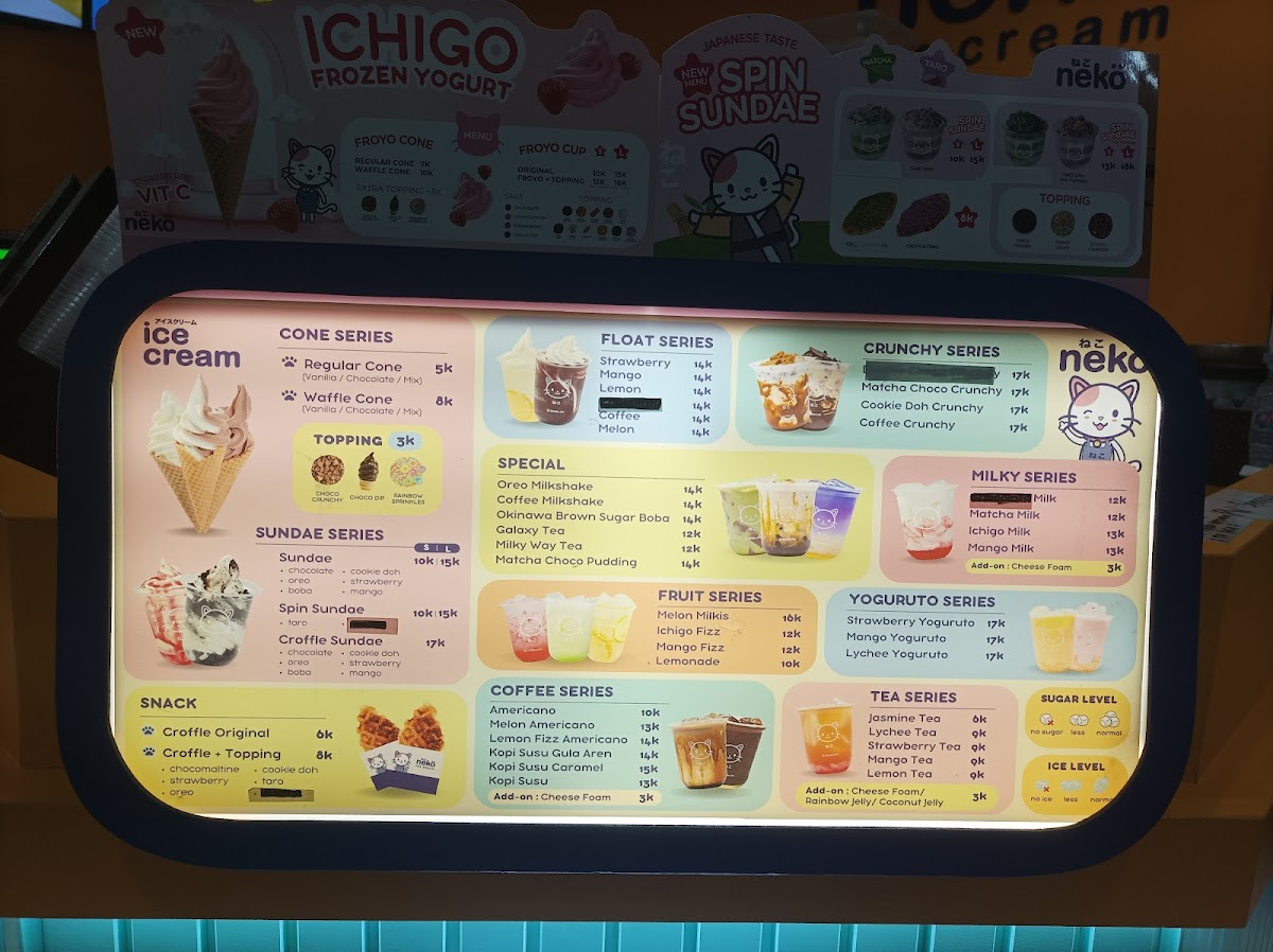 Neko Ice Cream Cafe Menu